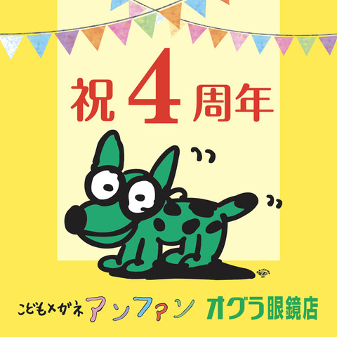「こどもメガネアンファン/オグラ眼鏡店 そごう千葉店」がオープンしてから、おかげさまで『4周年』を迎えました。このたび4周年を記念して、期間限定のキャンペーンを開催いたします。