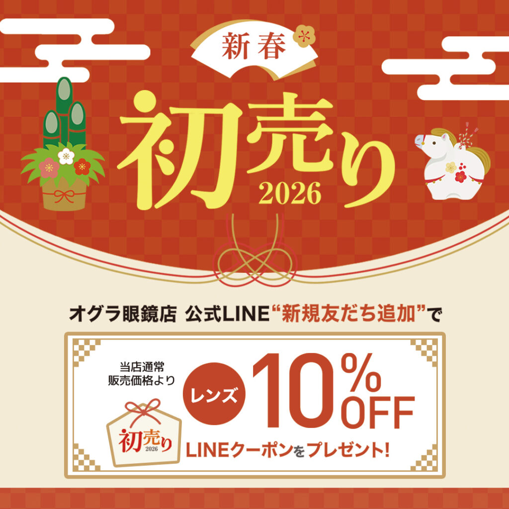 オグラ眼鏡店では新春初売りとして、1月2日(金)~12日(月・祝)までの期間中、オグラ眼鏡店公式LINEに“友だち追加”で大人用のメガネレンズご購入で使えるレンズ10%OFFクーポンをプレゼント!