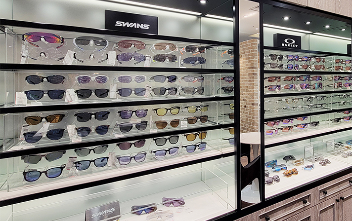 | 取り扱いブランド | SWANS、OAKLEY、Rh+、RUDY PROJECT、EYEVOL、Maui Jim |